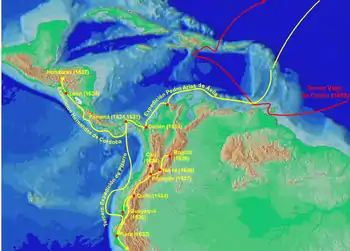 The territory was first sighted by Spanish explorer Alonso de Ojeda in 1499,[3] though he never landed. A short time later, Juan de la Cosa, another Spanish explorer, landed on what is today called Cabo de la Vela (Cape of Sails) in the Guajira Peninsula.[4]