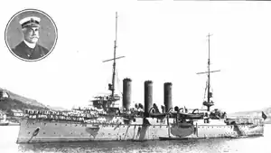 The ship travelled to Britain in June 1911 to represent the country at the coronation fleet review for the new king, George V, held at Spithead on the 24th. The fleet included vessels from fifteen other countries in addition to the Royal Navy.[7] On 15 November 1911, Reina Regente was present in Gibraltar for a port call made by George V during his trip to India.[8] Spain remained neutral during World War I, and Reina Regente's service during the conflict was uneventful compared to her foreign contemporaries. In the post-war period, she was used as a training ship and sent on overseas cruises. The ship was eventually stricken from the naval register in 1926 and broken up for scrap.[9]
