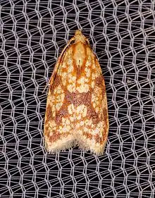 The sparganothis fruitworm moth or blueberry leafroller (Sparganothis sulfureana) is a species of moth of the family Tortricidae. It is found in most of eastern North America[3] and on Cuba.