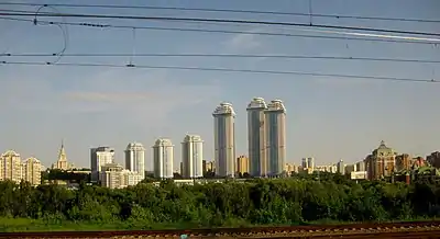 Sparrow Hills or Vorobyovy Gory (Russian: Воробьёвы Го́ры) is a residential complex in Moscow. The complex located at the base of Sparrow Hills and comprises seven buildings. 1,039 apartments are located in that complex, that was completed in 2004. As of 2007, its building 2 is the 4th tallest building in Moscow and the 3rd tallest residential building in Europe, with the tallest being a fellow Muscovite, the Triumph-Palace. The complex' address is Mosfil'movskaya ulitsa, 70. Tower Four is