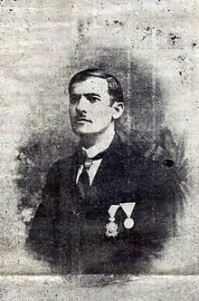 'Spasoje Hadži Popović (Serbian Cyrillic: Спасоје Хаџи Поповић; 18 August 1882 – 3 July 1926) was a Serbian teacher in Bitola and newspaper editor of Južne Zvezde (Southern Stars). He was born in Akritas (known as Buf in Slavic), in Florina (now Greece). Growing up, he was a witness to the conflict between the Ecumenical Patriarchate of Constantinople and Bulgarian Exarchate which divided the Slavic Christian people in Ottoman Macedonia.[1] He enrolled in the Serbian Gymnasium in Bitola in 1899.[1] He then enrolled in the teacher school in Aleksinac, which had been moved there from Belgrade, together with many pupils from Ottoman territory.[2] He was a member of the Saint Sava Society.[1] He was murdered by VMRO agents, who made a range of assassinations and terrorist acts against Serbs at that time.[3]