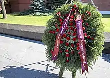 The President of Russia in his/her position as Supreme Commander-in-Chief of the Russian Armed Forces usually delivers a message of congratulations to the organizers and participants of the festival.[60] Greetings are also given by the Russian Defence Minister and the Mayor of Moscow. The day before the festival's opening ceremony, the directors of the participating bands lay wreaths at the Tomb of the Unknown Soldier in Alexander Garden.[61] The festival usually coincides with Moscow's City Day, which means that some of the participating bands take part in the procession along Tverskaya Street.[62]