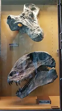 | Fossilized skull of two sphenacodontoids : Clelandina (Therapsida, Gorgonopsidae) and a Dimetrodon (Sphenacodontidae). | |