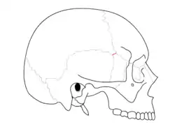 Side view of the skull. Sphenoparietal suture indicated by the arrow.