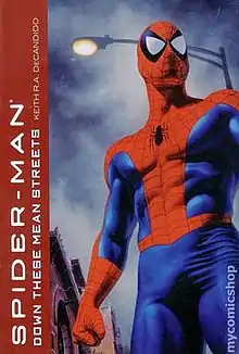 Down These Mean Streets is a mass market paperback, authored by Keith R. A. DeCandido and starring Spider-Man. It is one of several paperbacks in the Marvel Comics line published by Pocket Star Books.[2] If regarded in Earth-616 canon, the events in the novel take place roughly after Amazing Spider-Man #509.[3]