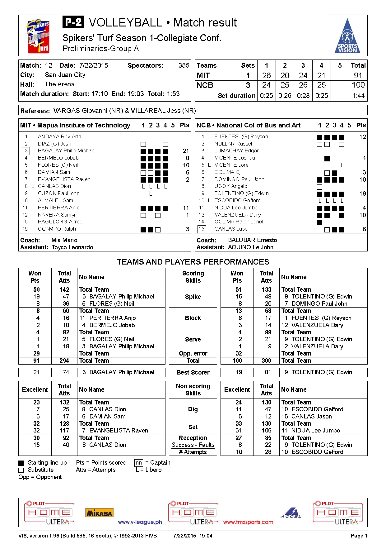 - "Ateneo goes 13-0, sweeps NU for Spikers' Turf title - Bong Lozada INQUIRER.net 08:24PM September 27th, 2015".