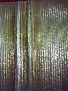 Spiral welding is a process where a continuous full penetration metal inert gas weld overlay is used to rebuild damage from wear, erosion, corrosion or cracking, or to increase the dimensions of a component to match an increased dimension on a mating part. Using the Spiral weld process eliminates the possible distortion of the component due to unbalanced stresses from normal welding processes. Spiral welding is a low energy input process, during which individual layers of weld and their associated heat affected zones are tempered and the grain structures refined by subsequent and overlapping temper beads.[1]