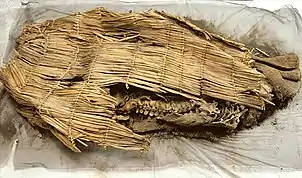The Spirit Cave mummy is the oldest human mummy found in North America.[1][2][3] It was discovered in 1940 in Spirit Cave,[4] 13 miles (21 km) east[5] of Fallon, Nevada, United States, by the husband-and-wife archaeological team of Sydney and Georgia Wheeler. He was said to be forty years old when he died. Analysis of the remains showed similarities to North and South American indigenous peoples and in 2016, the remains were repatriated to the Fallon Paiute-Shoshone Tribe of Nevada.[6] The Spirit Cave mummy was one of the first to be dated using accelerated mass spectrometer radiocarbon dating. In turn, its discovery and analysis gave much insight and motivation of further research into the chronology of the western great basin.[7]