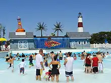 Splish Splash was built in 1989, headed by Chip Cleary with the original owners being the same as the owners of Adventureland.[1] It opened in May 1991 with three body slides, two speed slides, two kiddie pools, two tube slides, a lazy river, and a restaurant. In 1995, the Lazy River opened. The park has been owned and operated by Palace Entertainment since 1999.[1] Today, the lazy river is 1,300 feet (400 m) long and is accompanied by 18 water slides, 2 wave pools, several kiddie attractions, and a spray and play pirate theme attraction. It spans over 90 acres (360,000 m2).[3] In 2006, Splish Splash added a new funnel-shaped ride called Alien Invasion. In July 2008, they announced that they would be adding 7 rides over the next few years, including Dr. Von Dark's Tunnel of Terror for 2009, Kahuna Bay for 2011, Bootlegger's Run for 2013, The Battle of Mutiny Bay for 2014, and two new rides introduced in 2018, Riptide Racer and Bombs Away.[4] In 2020, the attraction Battle for Mutiny Bay was removed, as well as opting to stay closed for the 2020 season due to the Covid-19 pandemic. Cliff Diver, their 80 foot tall body slide was removed in 2021.