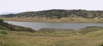 Commenced in 1984, completed in 1987, and upgraded in 2012, the Split Rock Dam is a minor dam on the Manilla River, located approximately 28 kilometres (17 mi) upstream, north of Manilla and 70 kilometres (43 mi) north of Tamworth, accessed by a turnoff from Fossickers Way. The dam was built by Abignano Pty Limited on behalf of the New South Wales Department of Land and Water Conservation to supply water for irrigation, flood mitigation and potable water for towns in the Namoi Valley, including Manilla and Barraba.[1][2][3] Together with Keepit Dam, Split Rock Dam supplies extensive irrigation water in the Namoi Valley. The dams also supply water for the town of Walgett and generates hydro-power for the national grid.[1]