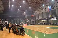 Apart from inserting new seats which were a donation from Football Federation of Sweden, the stadium has also been subject to a number of other architectural interventions, including a roof top in the western wing which would enable spectators shelter during rain, and a fence in the north-eastern wing.[58] The Youth Palace which is located in the centre of Pristina, is the home of many sports played indoors in the city including basketball, volleyball, table tennis and futsal. The Palace constructed in 1977 was financed from the voluntary contributions of the citizens of Pristina. Its first director was Kemajl Hashimi, while from 2008 and on this institution is under the management of the Kosovar Agency of Privatization. The Youth Palace has an area of 8136 m2.[59] During the year of 2013, Sigal Prishtina has invested in the renovation of the Palace in order to get prepared for the matches against the teams of Balkan League in Basketball.[60] Another football stadium located in Pristina is the Stadium of Flamurtari, which is home ground to Flamurtari Football Club and Kosova e Prishtinës Football Club. This stadium has a capacity of 2000 seats.[61] Pristina possesses outdoor tennis courts where Pristina Tennis Club and DielliX Tennis Club operate their activity.[62] These two hard surface courts are also equipped with proper lightning that enable play during night. Two of the biggest tournaments organised in Kosovo take place in these courts, Pristina Open and Dielli Open. Apart from tournaments, Pristina's tennis grounds have also been utilized for junior tennis camps organized by Pristina Tennis Club.[62] The sport infrastructure is an issue of current debate. The reasons for the lack of or poor quality of Pristina's sport venues include the consequences of the last war (1999),the lack of investments in the past 25–30 years, and the difficult economic situation of the country.[1]
