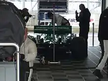 Sporting CP car in the pitlane garage at Silverstone Circuit (2010)