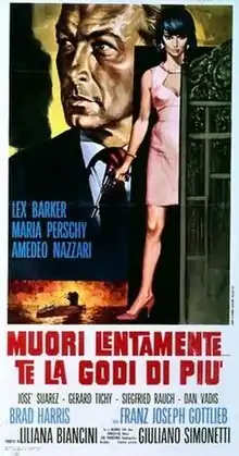 Spy Today, Die Tomorrow (German: Mister Dynamit – Morgen küßt euch der Tod, Italian: Muori lentamente... te la godi di più, Spanish: Mister Dinamita, mañana os besará la muerte, also known as Die Slowly, You'll Enjoy It More) is a 1967 German-Italian-Spanish Eurospy film written and directed by Franz Josef Gottlieb and starring Lex Barker.[1][2]