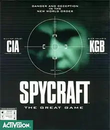 Spycraft (also known by its full title, Spycraft: The Great Game) is an adventure CD-ROM game published by Activision in 1996. It details the attempted assassination of the President of the United States and the CIA and SVR attempts to save him. Although the game was not approved by either organization, it tends to favour realism due to its coordination with former CIA director William Colby and former KGB Major-General Oleg Kalugin, who also appear in the game as themselves. The game also stars James Karen, Dennis Lipscomb, Joseph Ruskin, Tim De Zarn, Kirk B.R. Woller, Allan Kolman, Chase Masterson and Charles Napier in prominent roles.[2]