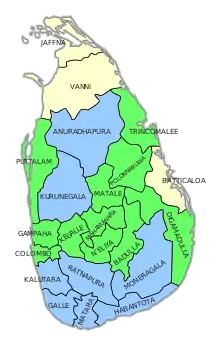 | Districts won by UPFA |