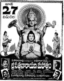 Sri Satyanarayana Mahathyam (transl. Glory of Sri Satyanarayana) is a 1964 Indian Telugu-language Hindu mythological film, produced by P. Satyanarayana under the Aswaraja Pictures banner and directed by S. Rajinikanth. It stars N. T. Rama Rao, Krishna Kumari with music composed by Ghantasala.[1][2]
