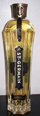 St-Germain is an elderflower liqueur.[1] It is made using the petals of Sambucus nigra from the Savoie region in France, and each bottle is numbered with the year the petals were collected. Petals are collected annually in the spring over a period of three to four weeks, and are often transported by bicycle to collection points to avoid damaging the petals and impacting the flavour.[2]