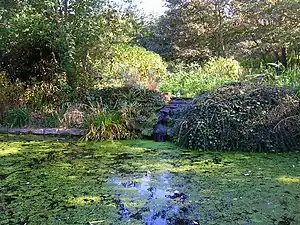 There was a health spa named the Chalybeate Spa[2] in Hove featuring the St. Ann's Well spring operating as early as the 18th century. At that time, the spring had considerably greater flow than it does at present.[3][4] In the 1760s, the Scutts made a number of improvements associated with the spring. Around 1800 an elaborate "pump room" was built over the spring, housing assorted facilities and accommodating the large numbers who came seeking therapeutic relief at that time. At the pumphouse at the top of the hill in the park, people could drink the brown waters of the spring (at some times of the year, the waters are closer to yellow).