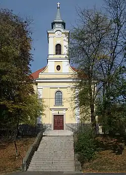 The construction of the building started on July 21, 1816. The church was consecrated on August 3, 1823. The parsonage was completed in 1826, and the church functions as a parish church since then. The church was built in late Baroque style with some Neoclassical elements; the altar and the pulpit are late Neoclassical. The first public clock of the city was in the church's tower.