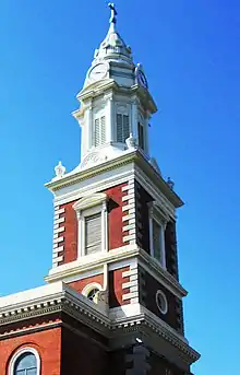 On June 15, 1976, St. Augustine's Church was listed on the National Register of Historic Places.[1] By 1988 the congregation of St. Augustine had shrunk to fewer than a dozen. The 1990s saw the congregation grow with Filipino Catholics from Philadelphia and the city's suburbs. In December 1992 an exact replica of Santo Niño de Cebú was dedicated, and Filipinos have held a special mass and festivals for Santo Niño.[3][10] Also in December 1992, a severe storm severely damaged the church's steeple. Debris from the steeple fell onto the Benjamin Franklin Bridge, which had to be closed for three days. The damage was severe enough that the steeple had to be disassembled and removed.[11] From a damaged roof, the church and art inside suffered water damage.[3] A new steeple was erected on October 18, 1995.[12] The steeple was replicated by Campbellsville Industries, "The Steeple People", located in Campbellsville, Kentucky.