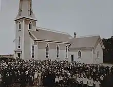 Prior to 1870, residents of Lot 11 traveled to St. Anthony parish, Cascumpeque, a journey which involved a ferry crossing and nine miles travel over land, or in winter time, a horse and sleigh ride across the ice. In 1868, under the guidance of their first priest Rev. James Aeneas McDonald (1820- ?),[1] the Catholic settlers of Lot 11 started construction on the church. It was completed in 1873, although by Christmas Eve 1870, construction was far enough advanced that midnight mass was offered on a temporary altar.