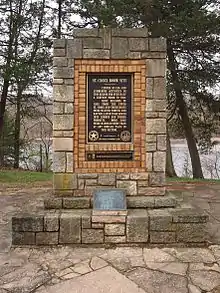 The St. Croix Boom Site is a historic and scenic wayside on the St. Croix River in Stillwater Township, Minnesota, United States. It commemorates the location of a critical log boom where, from 1856 to 1914, timber from upriver was sorted and stored before being dispatched to sawmills downstream. The site was developed as a roadside park along Minnesota State Highway 95 in the 1930s. In 1966 it was designated a National Historic Landmark for its national significance in the theme of industry.[2] It was nominated for being the earliest, most important, and longest serving of the log storage and handling operations that supported Minnesota's major logging industry.[3] Virtually no traces remain of the site's original buildings and structures.[4]