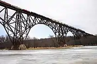 Train crossing the Soo Line High Bridge