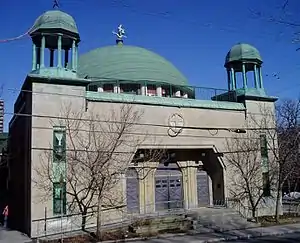 The site at Lyon Street and Maclaren Street in the northwest of Centretown was originally home to a Pentecostal congregation. It was purchased by Antiochian Orthodox Lebanese immigrants who opened the St. Elijah Antiochian Orthodox Church in 1931.[1] The original building was destroyed in a fire in 1949; the current Byzantine structure was erected to replace it.[2] With the Lebanese Civil War Ottawa saw an influx of Antiochian Orthodox immigrants. The congregation thus decided to move to a larger structure on Riverside Drive. The building was sold in 1989 to a partnership of the local Anglican Diocese and CCOC, the Centretown Citizens (Ottawa) Corporation, a non-profit housing trust.[3] In the Anglican half of the structure are twenty apartments for homeless women. In the CCOC portion there are twenty bachelor apartments.[4] The conversion of the church into apartments while retaining the building's exterior character received a City of Ottawa Heritage Award.