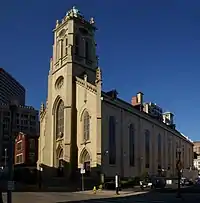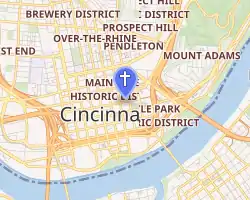 St. Francis Xavier Church is located at 611 Sycamore Street, Cincinnati, Ohio. This was the location of the first diocesan cathedral and the center of early Roman Catholic life in Cincinnati. It was dedicated to St. Peter on December 17, 1826. "Christ Church" (founded 1819), the city's first Catholic church was located at Vine and Liberty streets, in the "Northern Liberties" area, at the time outside of the city. A story that the church had to be built on the outskirts of the city because anti-Catholic prejudice prevented a Roman Catholic church within city limits has been shown to be false by church historians.[3] Its frame building was moved on wheels to Sycamore Street in 1826 to serve as the first seminary. Saint Francis Seraph Church now is on the former site, on land purchased from James Findlay.
