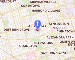 Saint Francis of Assisi is a Roman Catholic church in Toronto, Ontario, Canada. It is located in the west end neighbourhood of Little Italy and Trinity-Bellwoods, and within the Roman Catholic Archdiocese of Toronto. It has been served since 1968 by the Franciscan Friars of the Province of the Immaculate Conception.