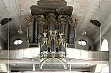The organ was restored and expanded from 1959 to 1961 by Paul Ott from Göttingen.[2] The Prospect and some stops are still original,[3] and thus the largest instruments containing parts by Dahm.[2]
