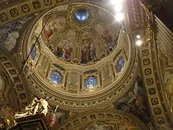 St George in glory by Giovanni Battista Conti situated in the apse of the Basilica completed in 1955.