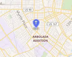 The Cathedral of Saint John the Evangelist or La Cathédrale St-Jean, originally called l'Église St-Jean du Vermilion, is the cathedral and mother church of the Catholic Diocese of Lafayette. It was the first parish in Lafayette Parish, founded in 1821, and was made cathedral upon the erection of the diocese in 1918.[4][5]