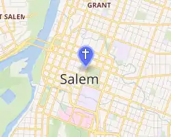 In 1873, the sisters completed a new academy building on the corner of Center and Cottage Streets. A new church was erected on the corner of Chemeketa and Cottage Streets and was named St. Joseph Church (per the archdiocese history of Oregon the name change was possibly to avoid confusion with another parish named St. John's[7] ) and opened in 1889.The parish's current church was dedicated in 1953. A new parish center was completed in 1999.[5][6]