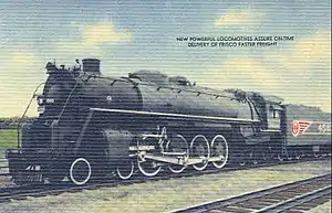 ![]() Postcard photo of Frisco locomotive #4503, a 4-8-4 "Northern" produced by Baldwin for the railroad in 1943. | |||||||||||||||||||||||||||||||||||||||||||||||||||