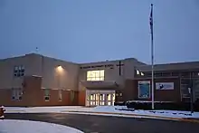 St. Martin Secondary School is a separate Roman Catholic secondary school located in the Erindale neighbourhood of Mississauga, Ontario, Canada. It is under the jurisdiction of the Dufferin-Peel Catholic District School Board. The current principal of St. Martin Secondary School is Jason Pratt. The school has approximately 1088 students (2019).