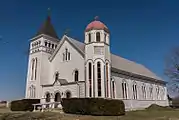 St. Mary's Church is a historic turn-of-the-20th century Catholic church located in the unincorporated community of Adair, 12 miles northeast of Kirksville, Adair County, Missouri, on Missouri Route 11.[2] An example of Romanesque Revival architecture, it is one of the few wood-frame structures in that style still remaining in the United States.[3] St. Mary's was constructed in 1904, and was added to the National Register of Historic Places in 1974. It is now owned and managed by Friends of St. Mary's, a non-profit preservation organization.[4]
