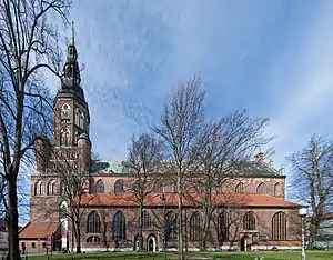 St. Nikolai, Greifswald (German: Greifswalder Dom St. Nikolai), dedicated to Saint Nicholas, the patron saint of seafarers and merchants, is a Brick Gothic church located in the western part of the centre of Greifswald. It was the main church and seat of the bishop of the Pomeranian Evangelical Church.