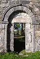 St. Olav's Church ruins main portal, with double chevron arch and columns