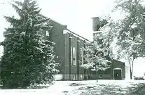 By the 1910s, the old frame building had proved insufficient for the church's needs. Consequently, the parish arranged for the erection of its third and final church, a Flemish bond brick structure constructed in a transitional Italianate style of architecture.[2][3]: 3 This building was based on a foundation of concrete and a gabled tile roof; the rectangular church featured a square bell tower on its southwestern corner. The interior featured frescoes and a prominent statue of Saint Patrick (the patron saint of Ireland[5]); it was lit by multiple windows of stained glass.[2] As a large church in a rural setting served by priests of the Society of the Precious Blood, St. Patrick's was closely connected to many other churches in western Ohio: wide areas of western Ohio that were primarily settled by Catholics feature large churches at sparsely-populated crossroads. While most of these churches are constructed in the Gothic Revival style of architecture, some of the newer churches of the region — including St. Patrick's — appear in a variety of styles; St. Patrick's was one of the few that lacked the high steeples of the Gothic Revival structures. The leading role of these churches in western Shelby County and the lands somewhat farther west has caused the region to be nicknamed the "Land of the Cross-Tipped Churches."[3]: 3, 6
