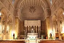 An organ of 35 stops was built for the original church building in 1904 by Jesse Woodberry & Co (Opus 251), designed by Edward MacGoldrick. The organ was enlarged to 50 stops and relocated to the gallery of the present building between 1923 and 1924 by Emil Mias. Mias died before the organ's completion, so his son, Paul F.C. Mias finished the organ. Casavant Frères built in 1947 a new console for the Woodberry/Mias organ, which was their Op. 1893. In 1959, Casavant annexed a Chancel organ (Op. 1893, 2560A) of 19 ranks, in the 'neo-baroque' style in the south transept to the Woodberry/Mias gallery organ. The gallery organ underwent significant tonal alterations in 1971 under the direction of Arthur Birchall, former vice-president of Aeolian-Skinner. A new “console" was completed in 1999 by Robert M. Turner, and numerous electronic "voices" were synthesized by Walker Technical Company.
