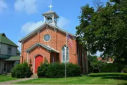 St. Peter's Episcopal Church and Rectory is a historic Episcopal church and rectory in Blairsville, Indiana County, Pennsylvania. The church was built in 1830, and is a small, rectangular brick building on a stone foundation in an Early Gothic Revival style. It features a belfry atop the front entrance gable roof. The rectory was built in 1889, and is a 2+1⁄2-story, wood-frame building with Eastlake movement elements.[2]