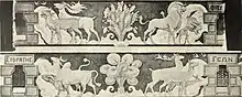 Before the church was consecrated, there had been at least two attempts at creating a permanent Greek Orthodox place of worship in Paris.[2] The church was commissioned by Demetrius Stefanovich Schilizzi, designed by architect Émile Vaudremer, and built by Guillotin. The purchase price of the site and construction cost amounted to F1,630,000 in total. The inside walls were decorated by Charles Lameire and the marble iconostasis by Ludwig Thiersch. Léon Avenet worked on the stained glass.