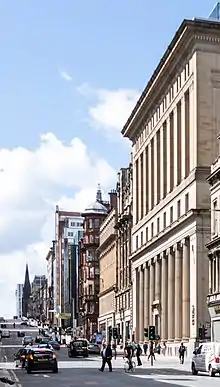St. Vincent Street, is one of the major streets in the city centre of Glasgow, Scotland. It was formed in the early 1800s as part of the residential New Town of Blythswood developed by William Harley of Blythswood Square.[1] St. Vincent Street was named to commemorate the victory of Sir John Jervis, on 15 February 1797, off Cape Saint Vincent, Portugal.[2] when the Royal Navy defeated the Spanish fleet which was on its way to join Napoleon's French fleet.