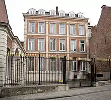 The college was founded in 1553 through a bequest by Nicolas Goblet, licentiate in canon law and provost of the chapter of Notre Dame de Dinant. It was intended to provide accommodation for poor students of philosophy, theology, and law, particularly those from Bouvignes-sur-Meuse or the County of Namur.[2] In 1597 the college moved to a new building, which was extensively renovated in the mid-18th century. The college was closed in 1797 and the building was sold in 1806. It has since then been in private hands and currently houses a notary's office.[3]