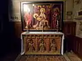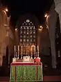 This chapel also contains the altar that Pugin had in his own chapel in his house. It was moved into this chapel in the 1930s. The painted reredos was donated by Sir John Sutton, Bt.[16] Above it is a window depicting this chapel's patron saints: St Lawrence (famously grilled to death in Rome for being a Christian), and St Stephen (a deacon and the first Christian martyr, stoned to death with the approval of the man who would become St Paul).
