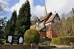 The church was designed by the Chester architect John Douglas and built in 1881.[3] It is built in red brick with timber framing in its upper parts, and has a roof of plain tiles.[2] The church is crowned by an octagonal flèche.[3] Its plan consists of a five-bay nave and a single-bay chancel between which is the flèche, with a vestry to the south and an annex accommodating the organ to the north.[2] Of its design the architectural historian Nikolaus Pevsner says it is "certainly an ingenious and entertaining building".[4]
