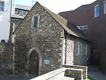 In the middle of the 19th century it was converted into a two-floor building, and became a dwelling-house and forge. In 1943 artillery shells from the cross channel guns destroyed the two shops hiding the chapel on the Priory Road side, leaving the chapel itself untouched. Attempts to make it a Scheduled Ancient Monument in 1963 failed and it was scheduled for demolition, but on attracting interest from a local Catholic priest(Father Tanner) it was privately purchased two years later. From 1967, it underwent a one-year restoration project, using original medieval techniques (although at least 75 percent of the building seen today is original), and reconsecrated in 1968 . During the restoration there was a 4-day archaeological investigation conducted by Brian Philp . In 1973 the building was protected with a grade II* listing.[4] It is now an ecumenical chapel, and was for a time open to the public. It now rarely opens. It is maintained by The St Edmund of Abingdon Memorial Trust. Though it is used for a Saturday morning Eucharist, a Christian Unity vigil, candle-lit services for the Feast Days of St Edmund and St Richard, it now opens to the public less frequently. On Good Friday 18 April 2014 prayers were said in the chapel by the Archbishop of Canterbury The Most Reverend Justin Welby. The first visit by an Archbishop of Canterbury for many centuries.