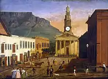 The colonial government donated a site at the lower end of the Dutch East India Company's gardens at the corner of Government Avenue and Wale Street and the bishop consecrated the land. The foundation stone was laid by Governor Sir Lowry Cole on St. George's day 23 April 1830 and at the same time Erste Berg Dwars Street was renamed St. George's Street. The church was built from drawings by the architect John Skirrow[4] based on W & H Inwood's Neo-Greek St. Pancras' Church in London.[5] Losing heavily on the deal, Hermann Schutte was the building contractor. The cathedral cost estimated £16,000 to build.[6] On 21 December 1834 that St. George's Church opened for services.[7] Upon diplomat Edmund Roberts visit in 1834, George Hough was chaplain and the church had a capacity of 1,000 people with 300 seats for the poor.[6]