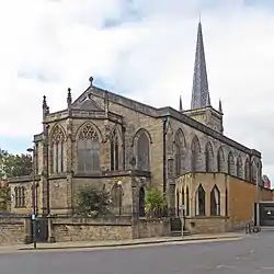 The church is a Grade II listed building, built 1836–38.[3] Its spire was blown down in 1962 and replaced in January 2006.[4]